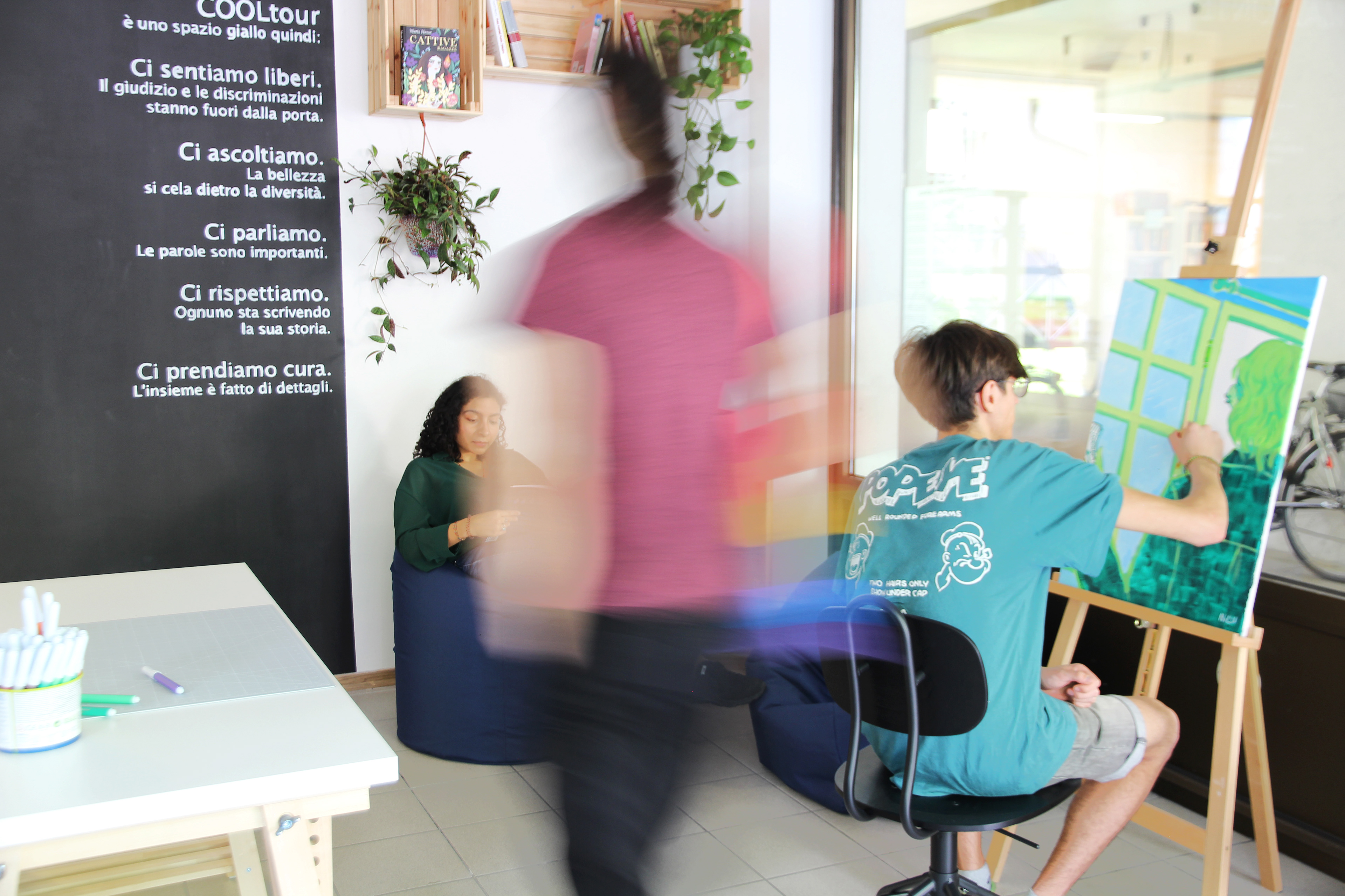 Camaleonte is a vibrant new space in Bolzano where teenagers and young adults can bring their own ideas to life—whether through personal projects, collaborative activities, or creative events. Designed to be as flexible and colorful as its name suggests, Camaleonte also serves as a platform for local artists to exhibit their work.