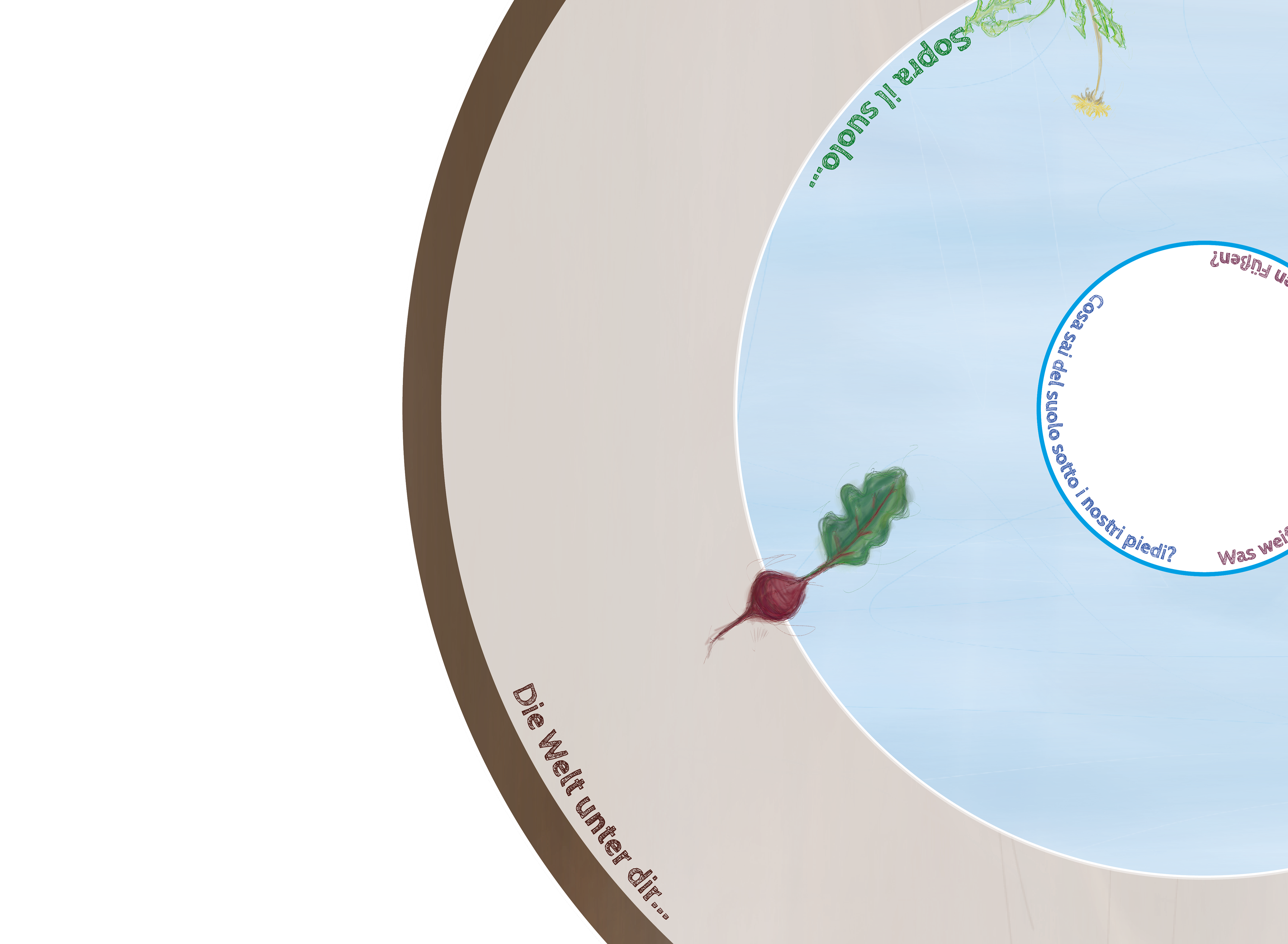 The narrative tells the story of a city boy who visits his grandpa’s farm. Together with the voice of the soil, they discover together how essential fertile soil is to the world. Through the storytelling approach children get invited to perceive soil as a living organism in growing food and sustaining life, deepening their understanding of the human-soil relationship.